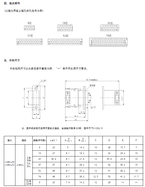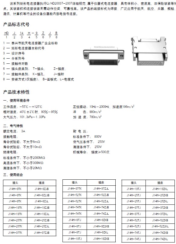 J14A、C、D、G、P系列矩形电连接器
